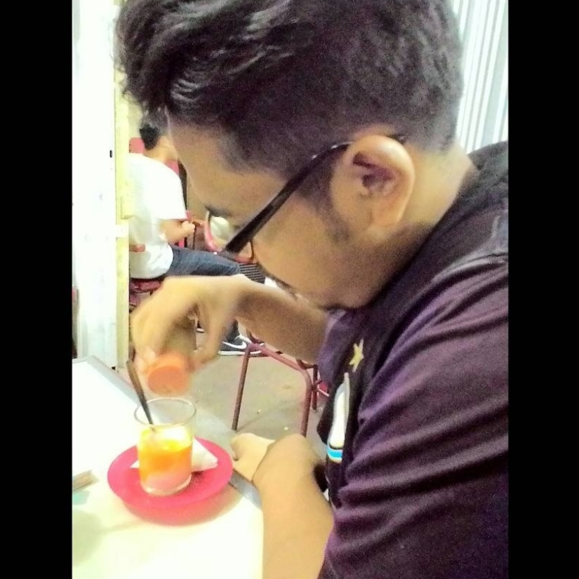 "Hmmm, tambahin juga ayam nungging di-PHP-in dan minumnya es cendol pocong."